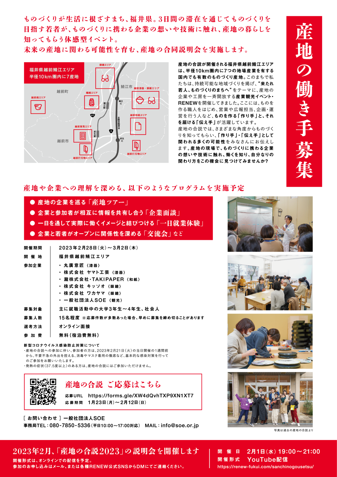 2023年2月28日-3月2日、3日間滞在型の合同企業説明会「産地の合説2023」を開催しました。